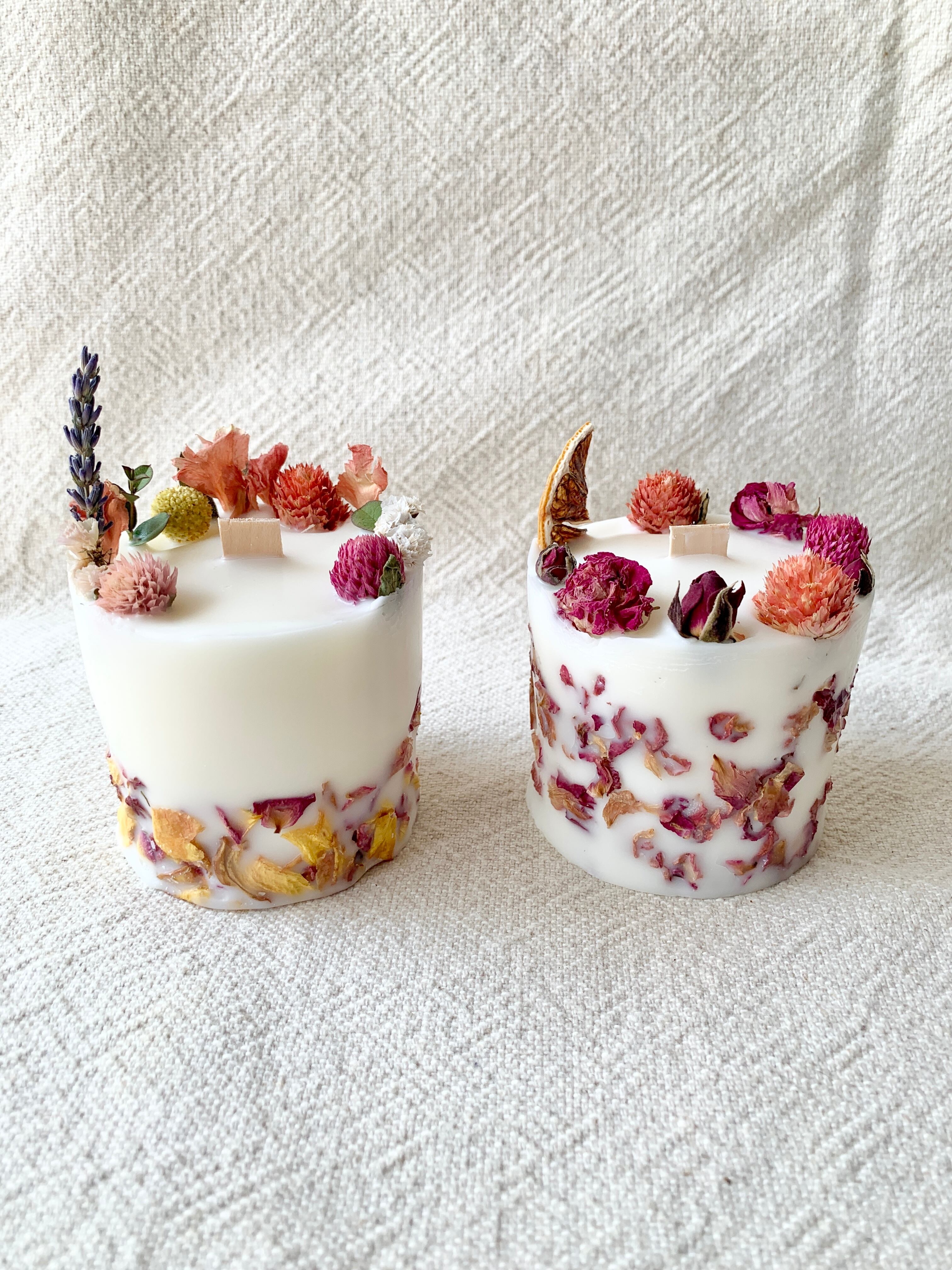 ソイキャンドルに色鮮やかなドライフラワーを