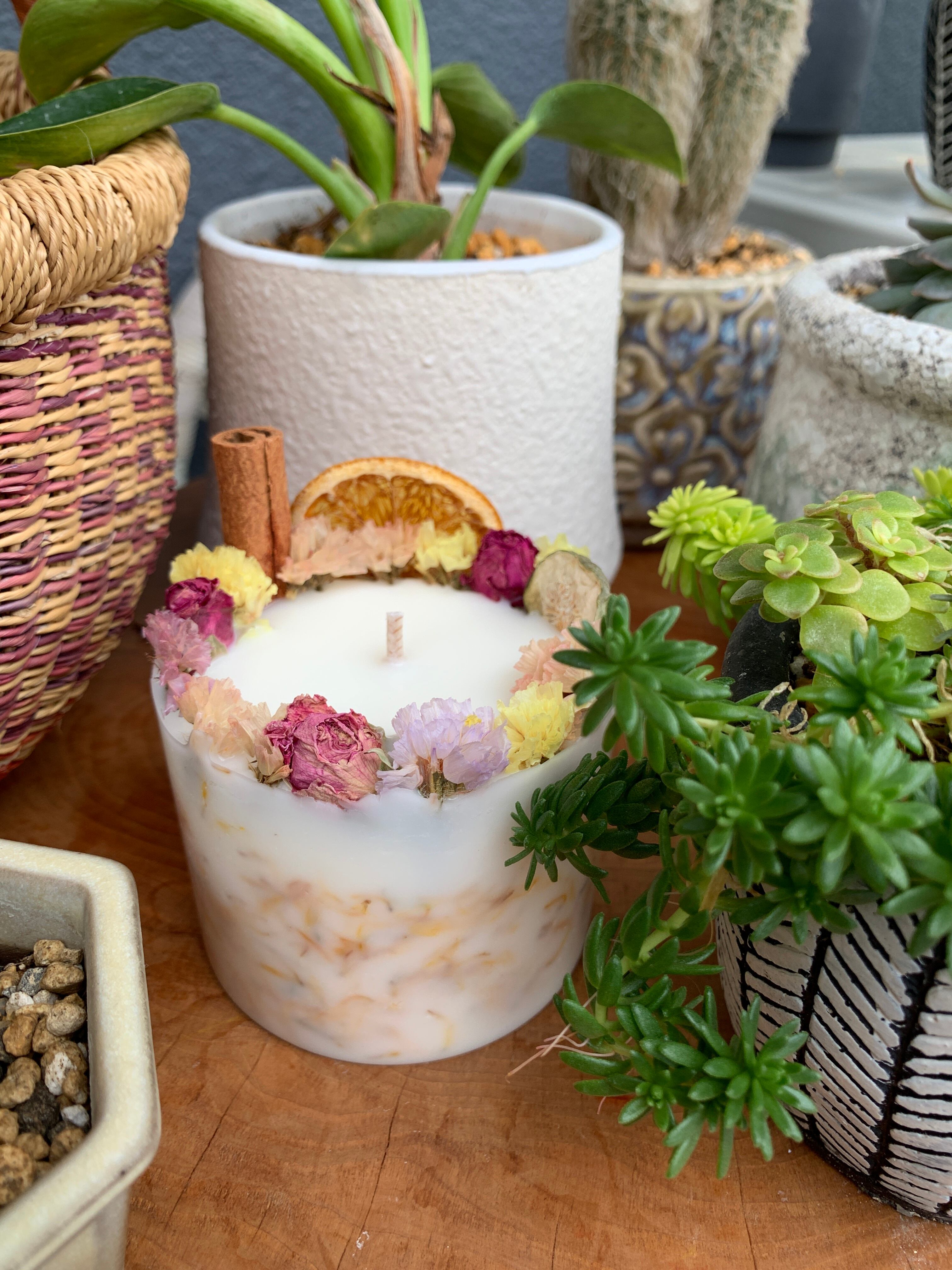 明るい雰囲気のボタニカルキャンドル